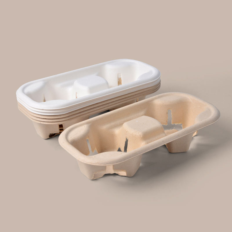 Takeaway 2 4 Cup Carrier Disposable Clip-On Utility Coffee Drink Cup Paper Pulp Fiber Holder Tray for 8-32 Oz