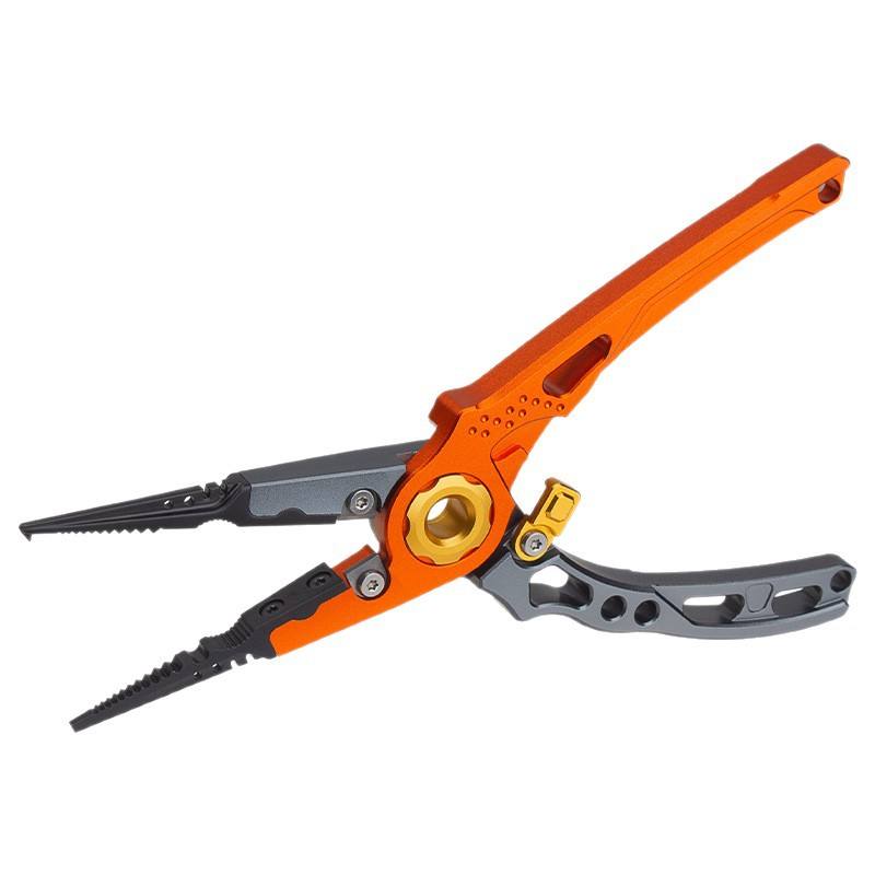 Takito Fishing Plier Aluminum Alloy Multi Functional With Locking Hook Remover And Weighted Sinker Orange Silver