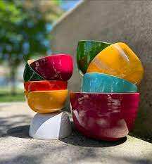Tall Bamboo Bowl Large White Round Bamboo Wooden Fruit Bowls| Colorful Bamboo Bowls