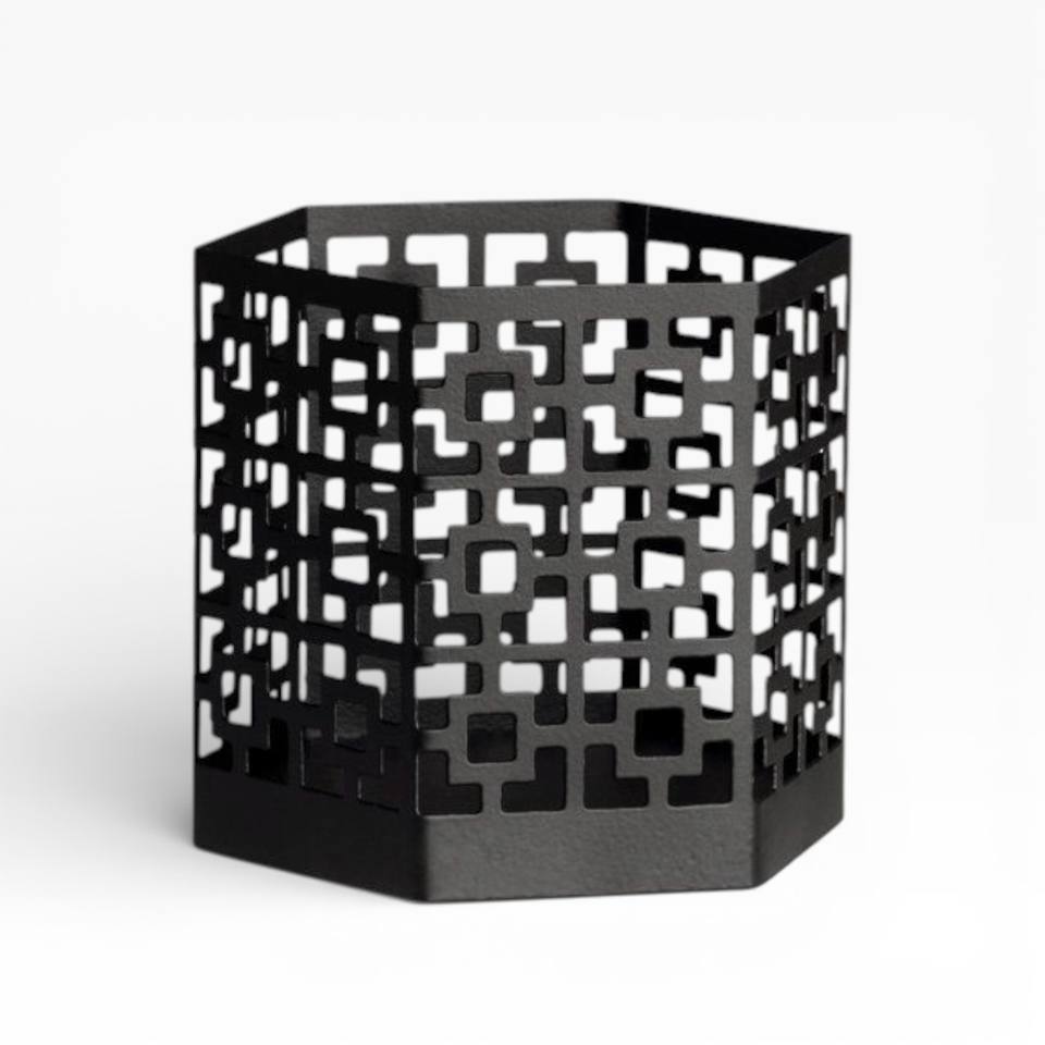Tall Black Metal Votives Candle Holder With Contemporary Diamond Cut Pattern For Modern Interiors