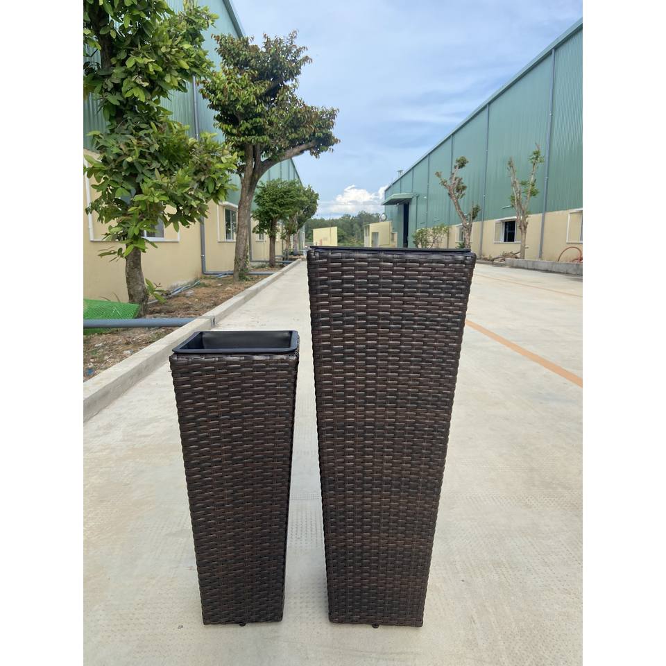 Tall Brown PE Rattan Wicker Outdoor Planter Set of 2 Elegant Flowerpot Design with Removable Liner