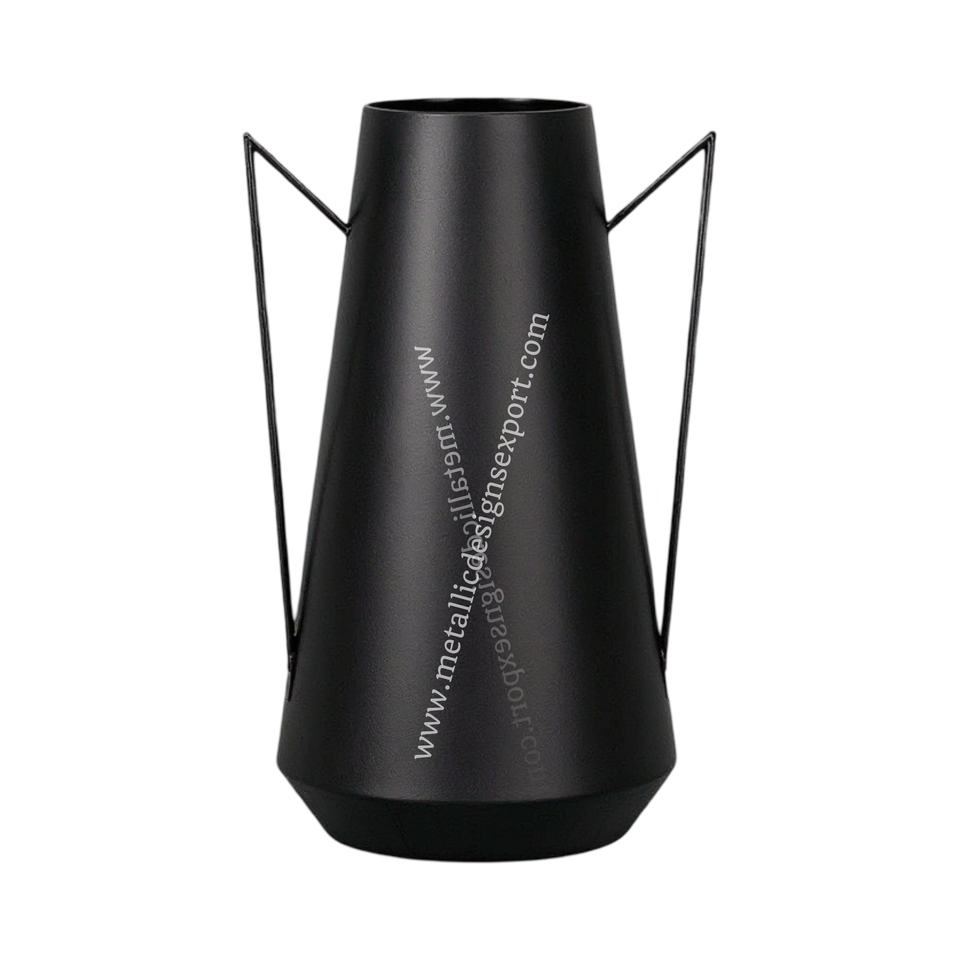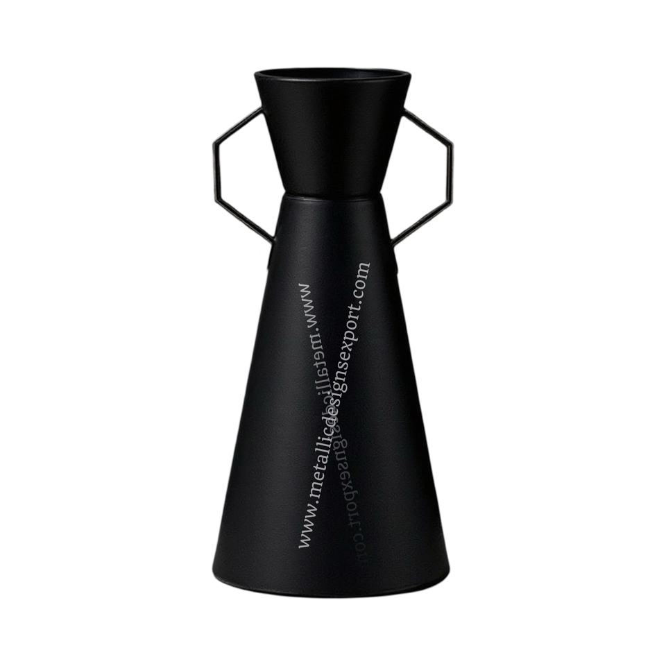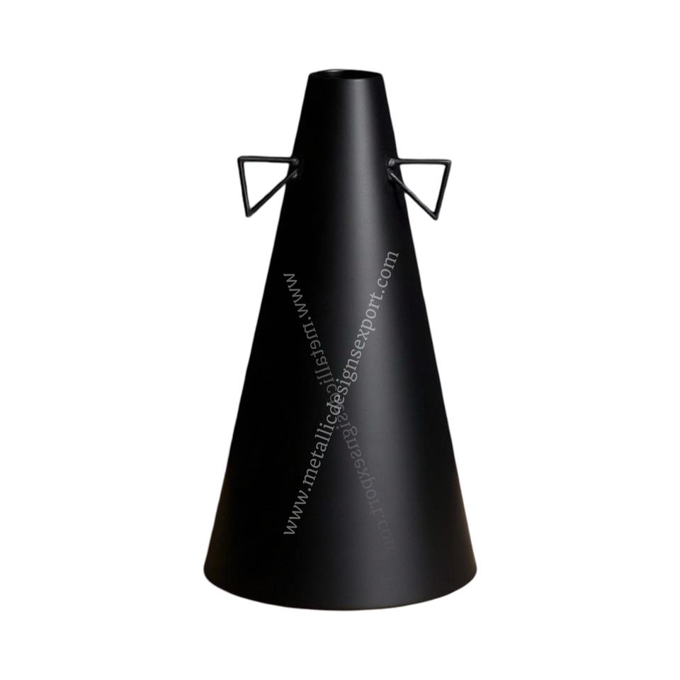 Tall Cone-Shaped Black Iron Flower Vase Triangle Handles-Coastal Modern Minimalist Design for Home Office Wedding Event Decor