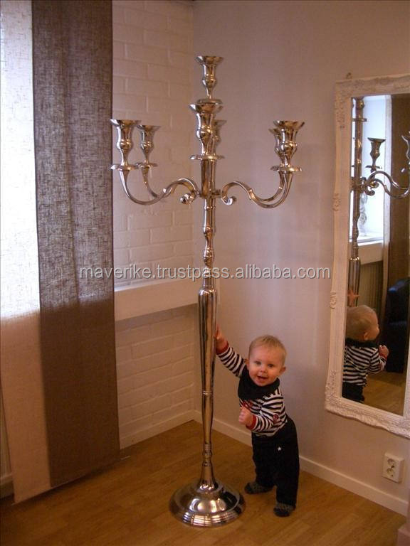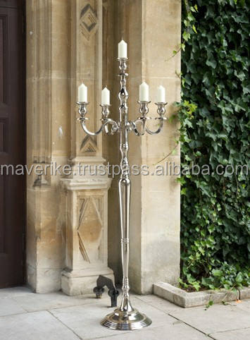 Tall Five Arms Hand Crafted Aluminum Candelabra Nickel Plated Floor Candelabra for Home Wedding Parties Decoration