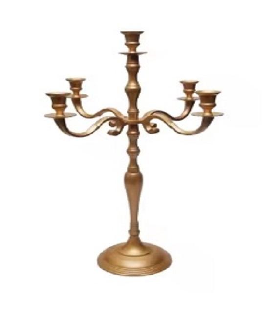 Tall Five Arms Large Candle Stand or Decorative Luxury Wedding Centerpiece Tabletop Candelabra Golden Classic Candlestick Holder