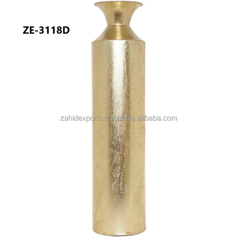 Tall Geometric Gold Metal Vase for Modern Hotel Lobby and Banquet Styling Copper Finished Leaf Arrangement Decor flower vase