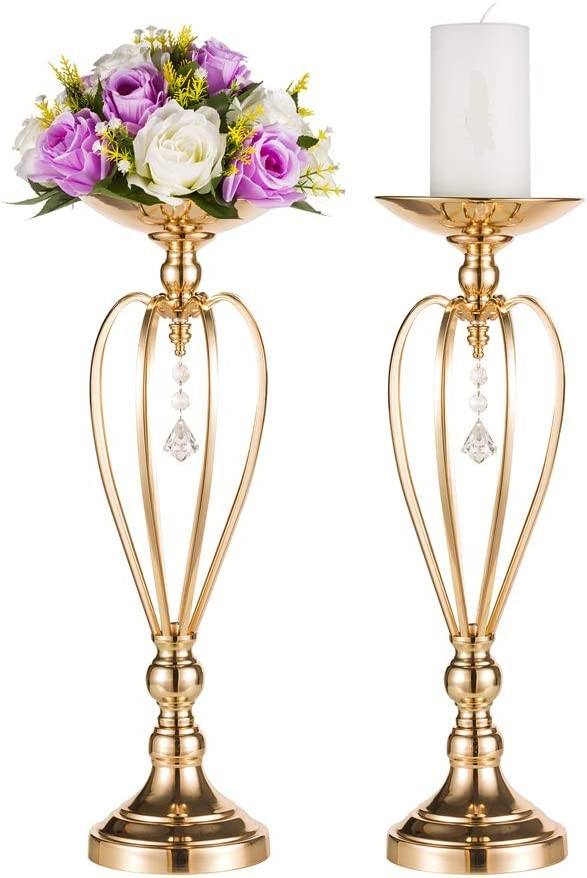 Tall Gold Rectangle Wedding Table Centerpiece Metal Flower Stand with Stem for Indoor and Garden Use for Hotels and Weddings