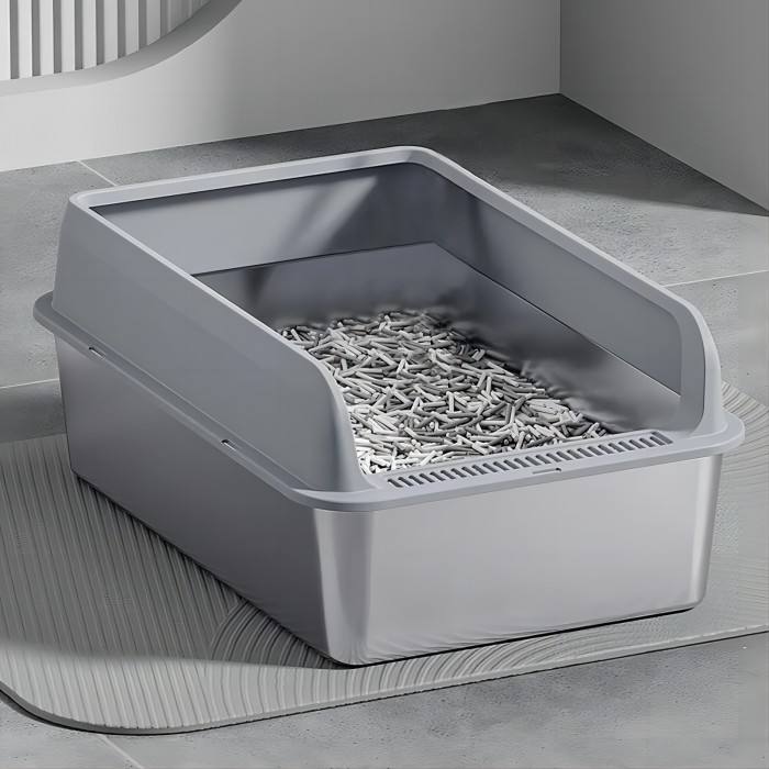Tall Open Top with High Sides and Scoop Non-Sticky Litter Pan Steel for Cats Metal Cat Toilet Litter Box