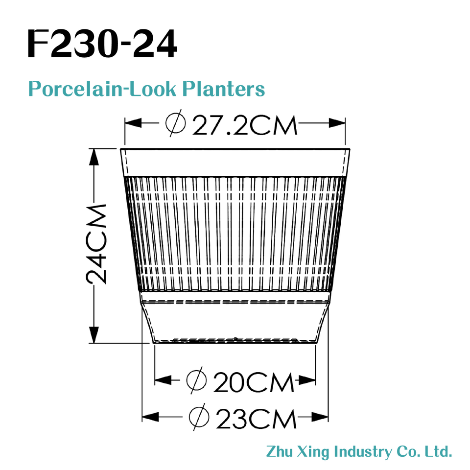 Tall Pleated PS Round Planter for 7 Orchids Quick-Assembly Tray High-Gloss Finish F230-24-S for Garden Compatible Zhu Xing F273