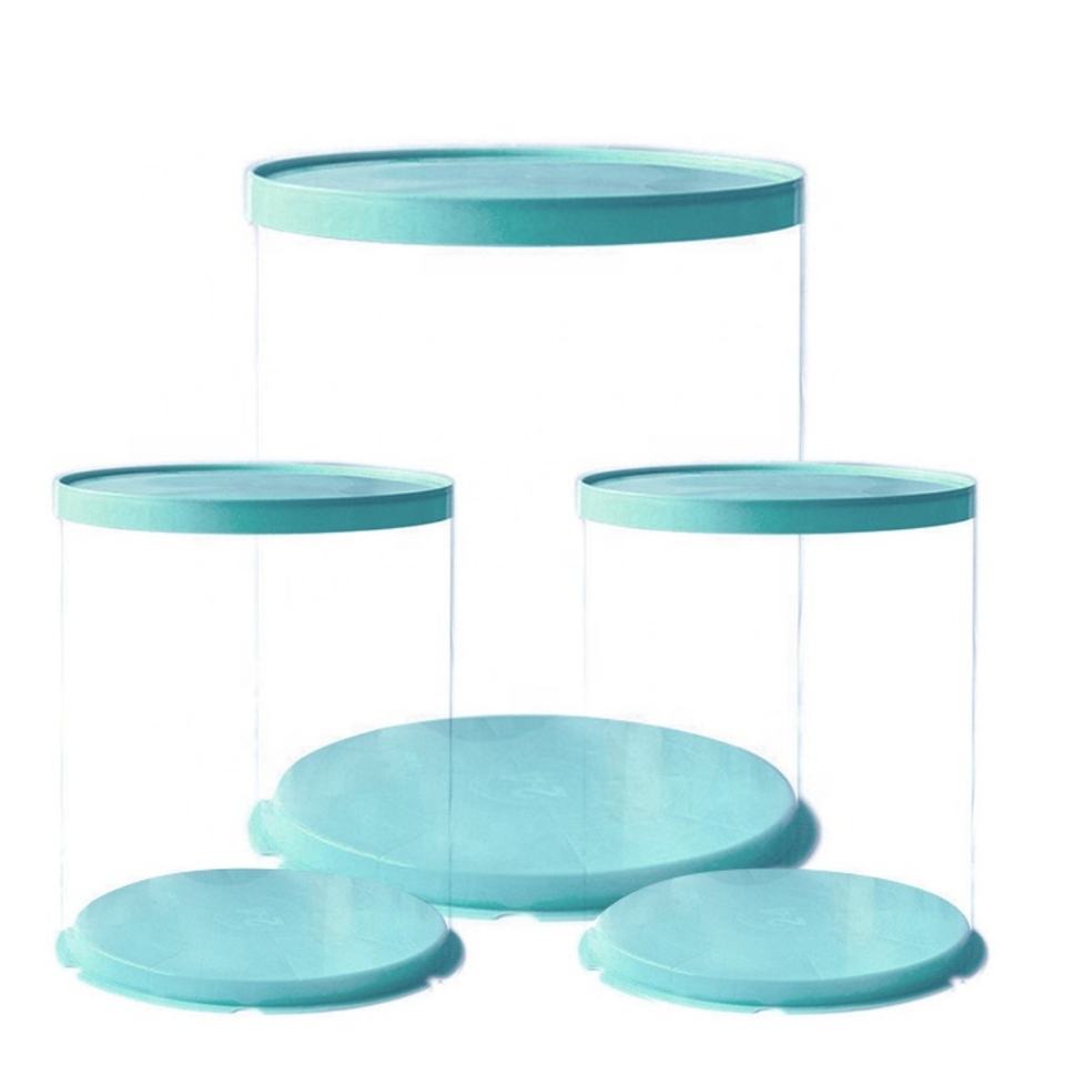 Tall Round Plastic Transparent Square Rigid Cake Packaging Box With Clear Cover