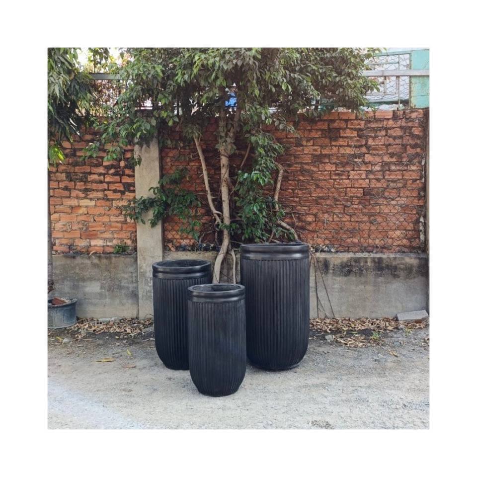 Luxury Eco-Friendly Tall Outdoor Fiber Concrete Planters Round Striped Design for Rooftop and Urban Gardens and Home Use