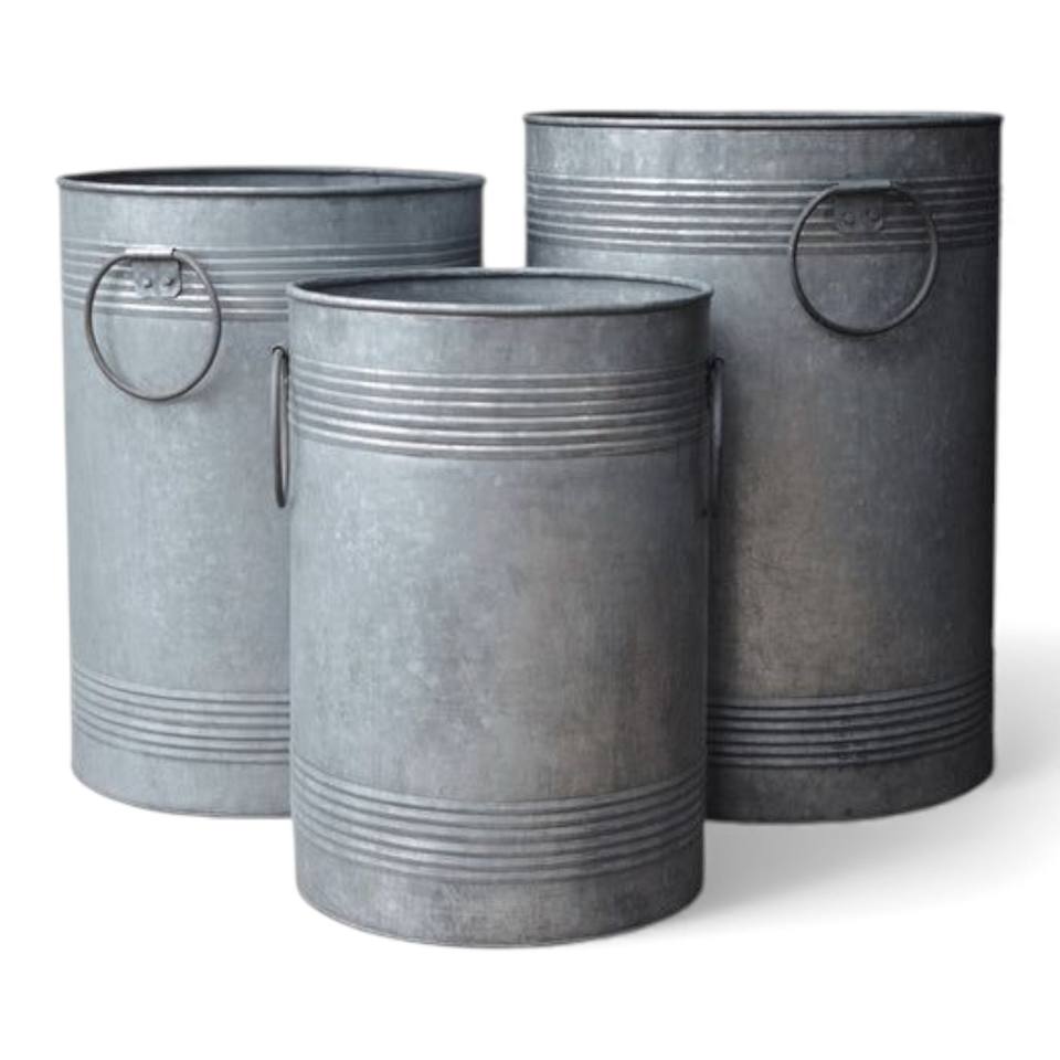 Tall Rustic Galvanized Cone-Shaped Planters with Wide Farmhouse Rolled Rims for Indoor & Outdoor Decoration