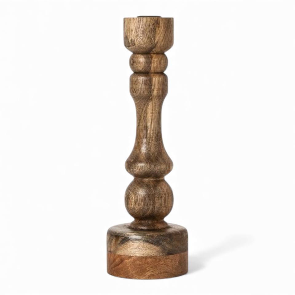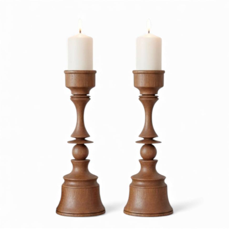Tall Sculpted Wooden Candle Holders with Elevated Cup Design and Smooth Polished Finish for Elegant Home Styling