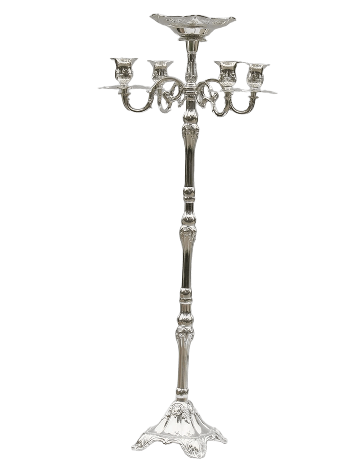 Tall Silver Beaded Candelabra Featuring Five Arm Styling And Elegant Finish For Luxury Home Decor