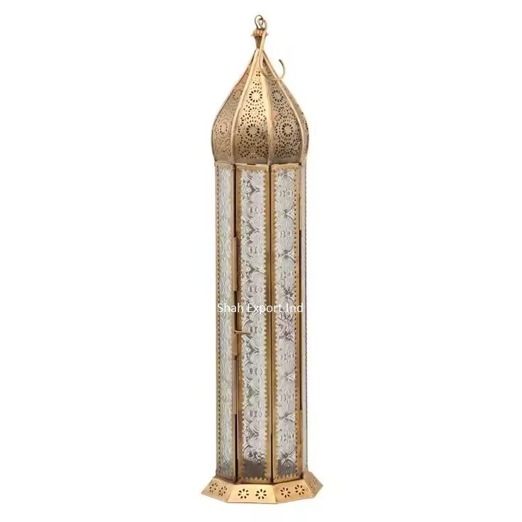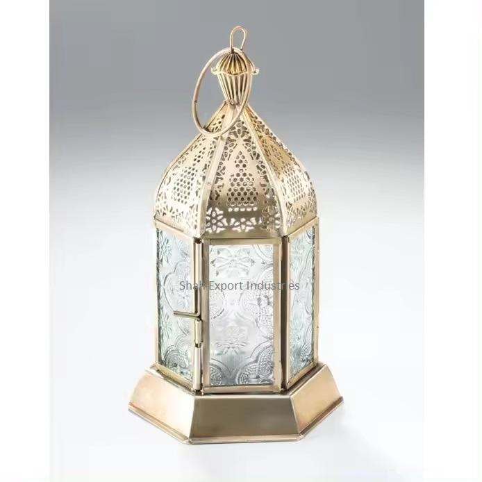 Tall Size Metal & Glass Hanging Candle Lantern Gold Finished for Home & Christmas Tabletop Decorative Lanterns