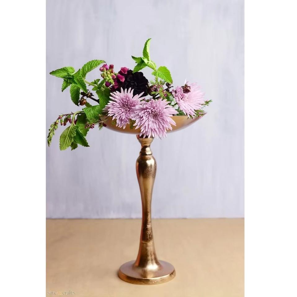Tall Slim Neck Vase with Large Opening Gold Finished Suitable To Hold Fresh Dried Or Artificial Flowers Or Decorative Accent