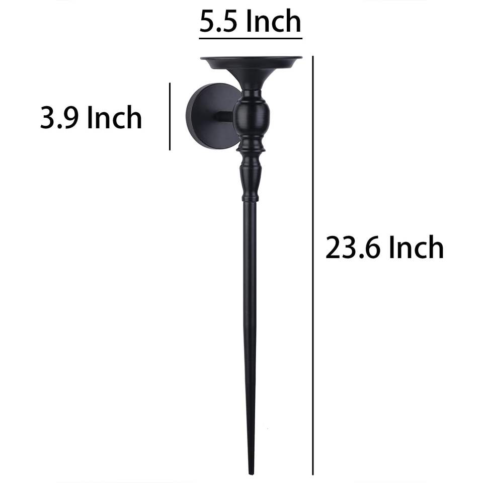 Tall black metal candle wall sconce with taper design elegant mounting plate sleek decor for classic set of 2