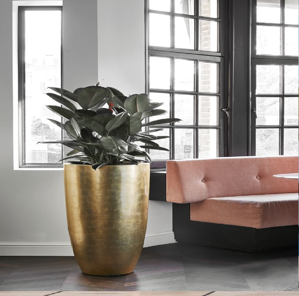 Tall gold metal planters with woven accents, multi-level plant stands, rustic modern, elegant, available at wholesale prices.