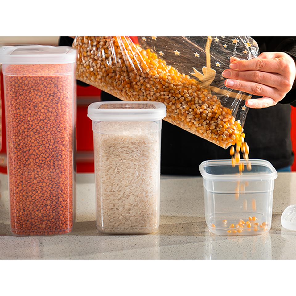 Tall Transparent Eco-Friendly Plastic Food Storage Container Set 3 Airtight Stackable Spice Dry Food Lids for Kitchen Pantry