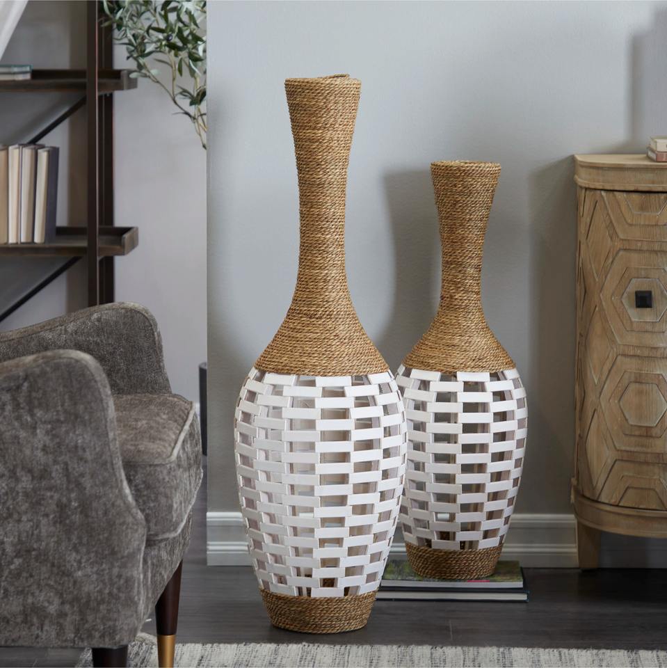 Size: D13 x H40 inch:Tall woven vase made of water hyacinth