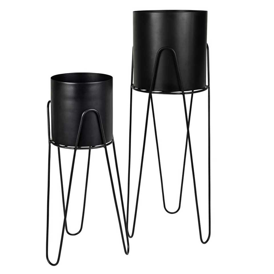 Tallixir Planter Trio with Gold Cylindrical Pots and Black Metal Stands Sculptural Accent Set for Modern Interiors