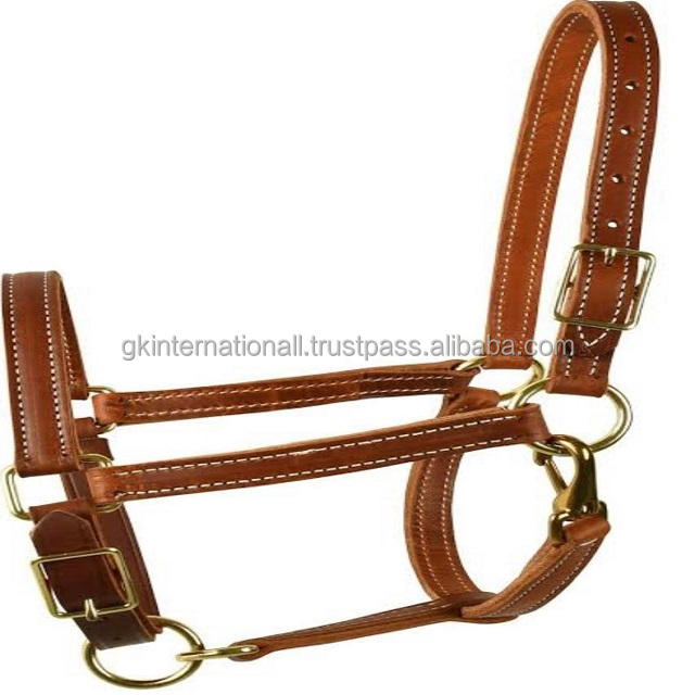 Tan Brown Genuine Leather Horse Halter Custom Made Double Stitched Padded Leather Horse Halter & Horse Equestrian Racing Goods