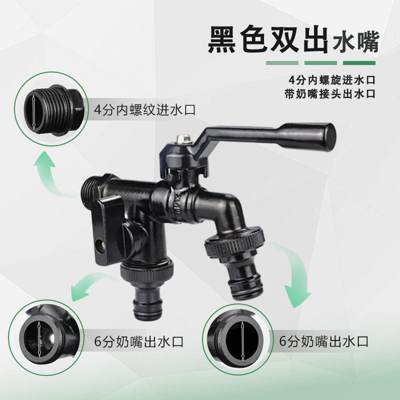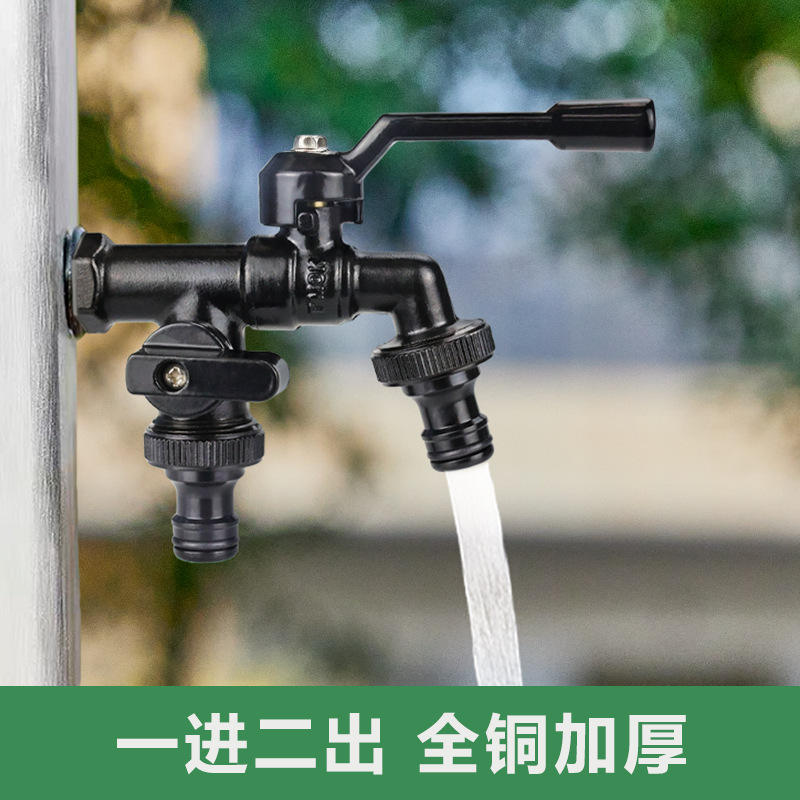 Tangke All-Copper Dual-Outlet Multifunctional Water Tap Outdoor Anti-freeze Black Faucet for Home Garden Use One Inlet Nozzle