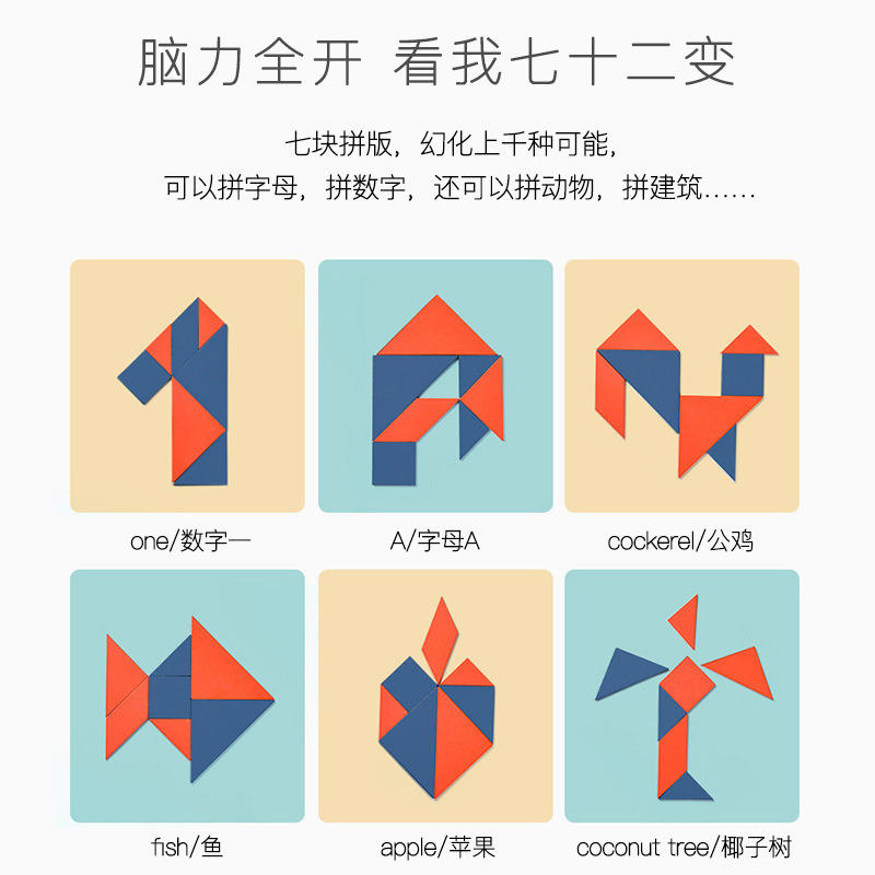 Tangram Puzzle Board For Children 4-7 Years Old Square Shape Wooden Educational Toy Unisex Pocket Design