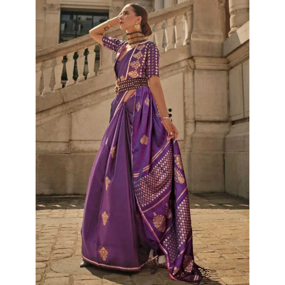 Tantalizing Purple Woven Satin Saree with Blouse Women's Sets for Function Wear