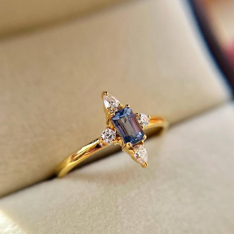 Tanzanite Zircon Engagement Ring Handcrafted 14K Gold Plated Luxury Celestial Inspired Minimalist Stacking
