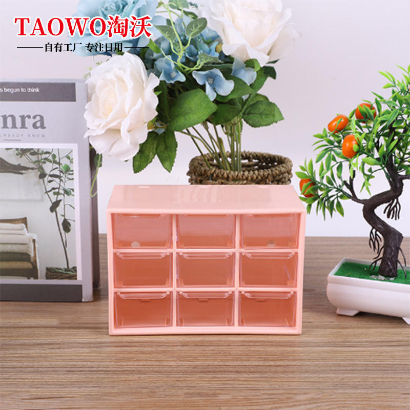 TaoWo Storage Box 9 Grid Transparent Desktop Organizer For Stationery Jewelry Makeup With Cute Stickers