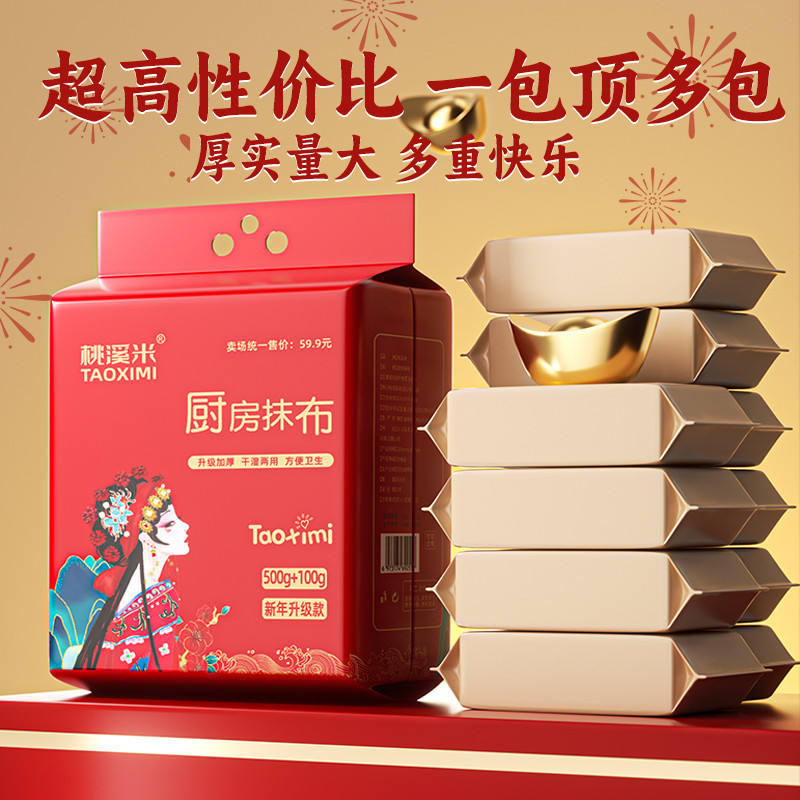 Taoximi Kitchen Cleaning Cloth 500g+100g Printed Family Pack Disposable Thick Durable For Home Use