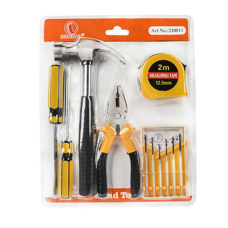 9 Piece Stainless Steel Ginger Hand Tool Kit Hammer Pliers Screwdrivers Measuring Tape Battery-Free Precision Set Home Repair