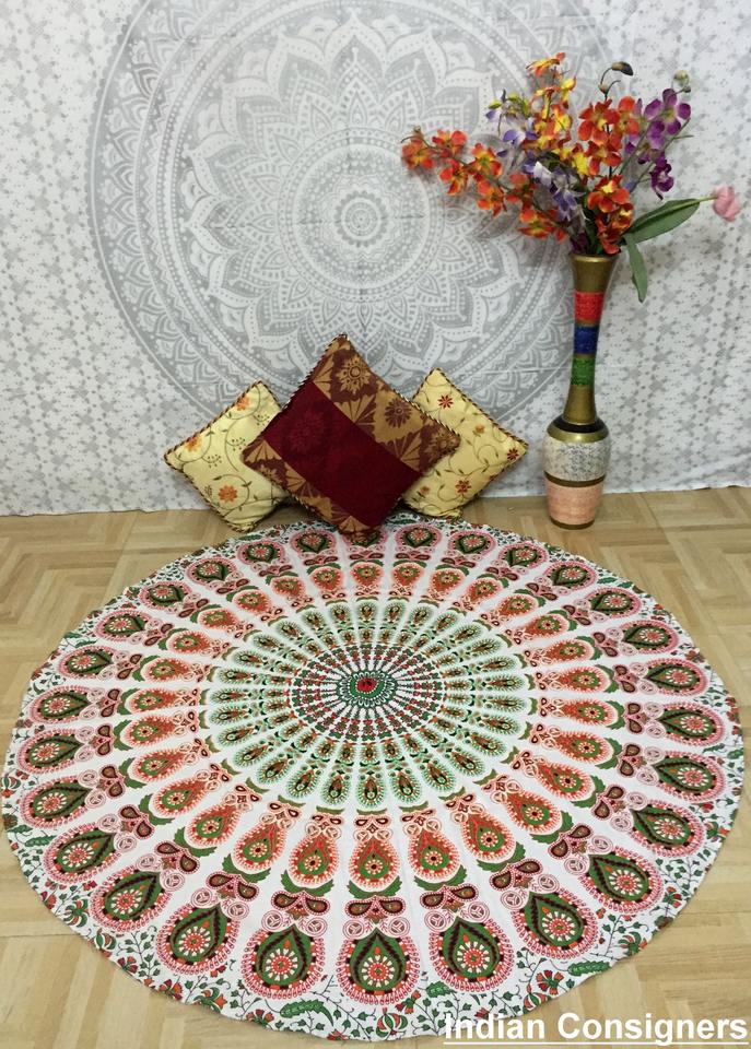 Product name:Peacock Cotton Beach Yoga Mat Tapestry Roundie Wall hanging Fringe