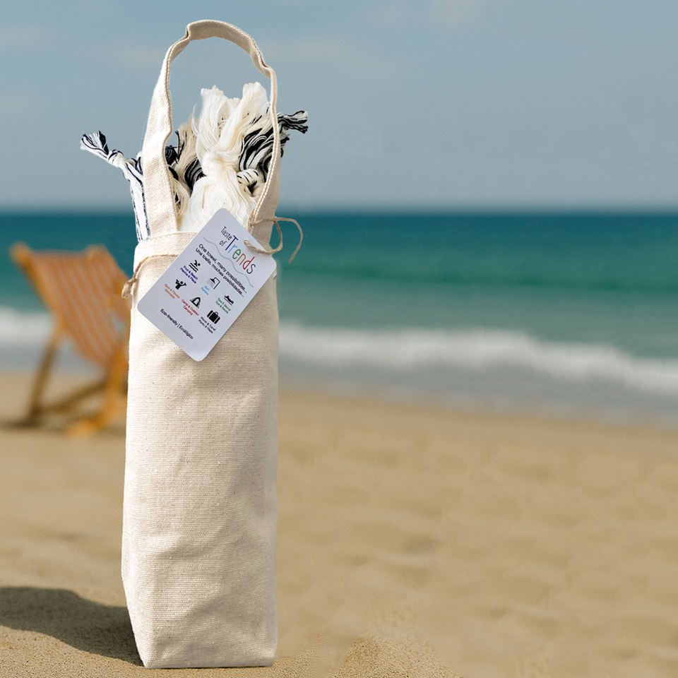 Taste Trends Best Price Luxury 100% Raw Cotton Turkish Striped Peshtemal Fouta Quick Sand Free Soft Absorbent Custom Logo Bag