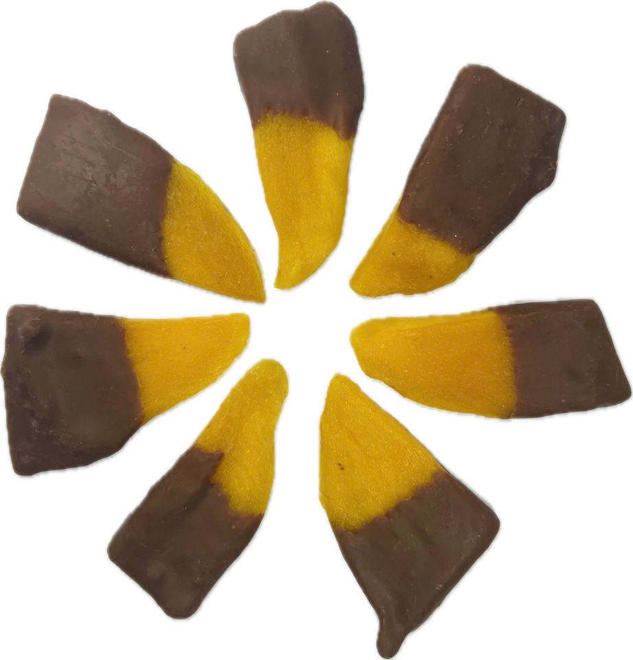Taste the harmony of pineapple dried fruit with black chocolate and mango coated in vanilla and white blends.