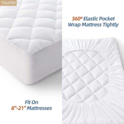 Taupiri King Quilted Mattress Pad Cover Waterproofing Fiber Material with Deep Pocket Solid Pattern for Living Room 8-21"