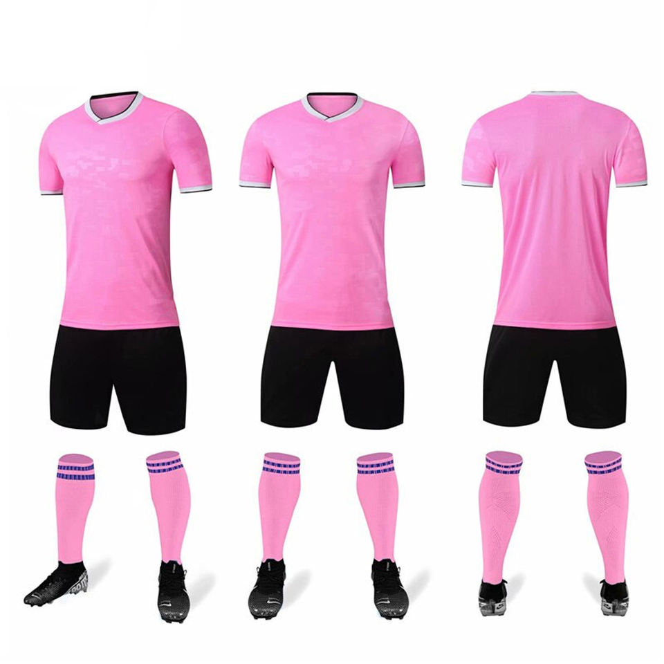Custom Soccer Uniform Kit for Men with Jersey Shorts and Socks Pink and Black Breathable Quick Dry Football Team Sportswear