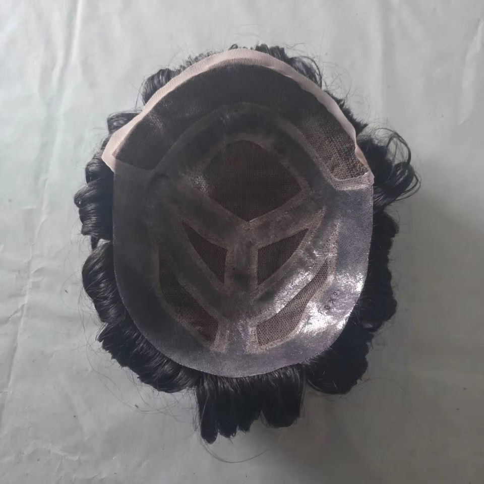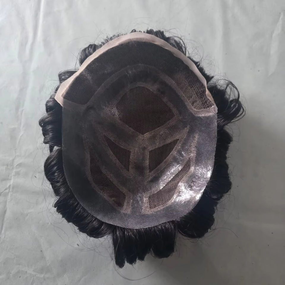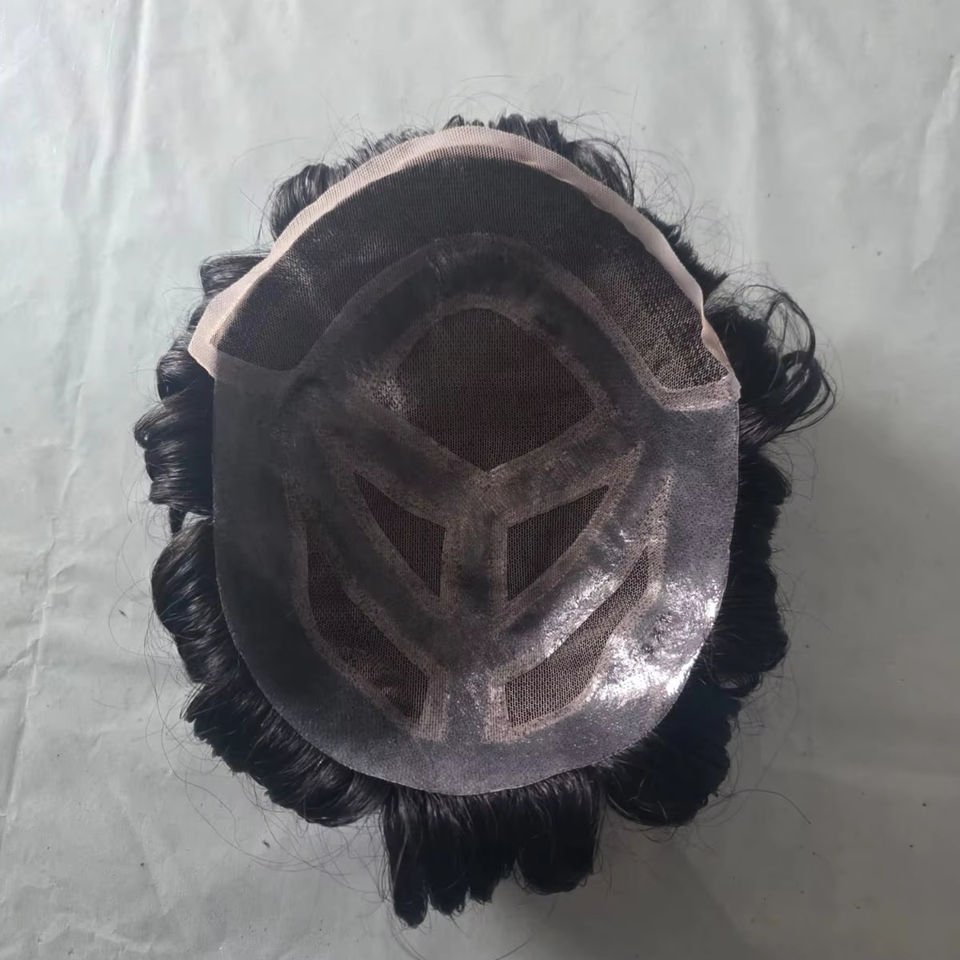 Taz Hair MGM Model Men's Lace Front Water Wave Soft Indian Remy Human Hair Toupee Wig Prosthesis Patches Systems