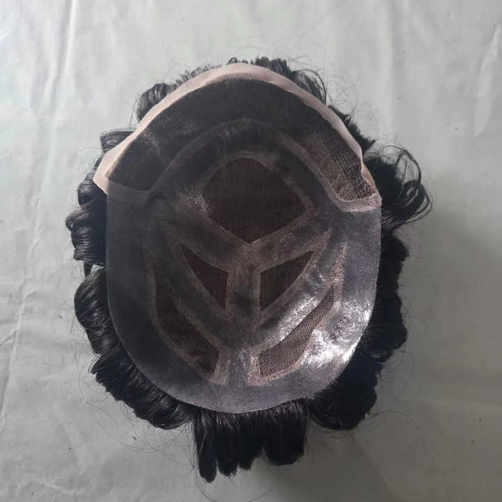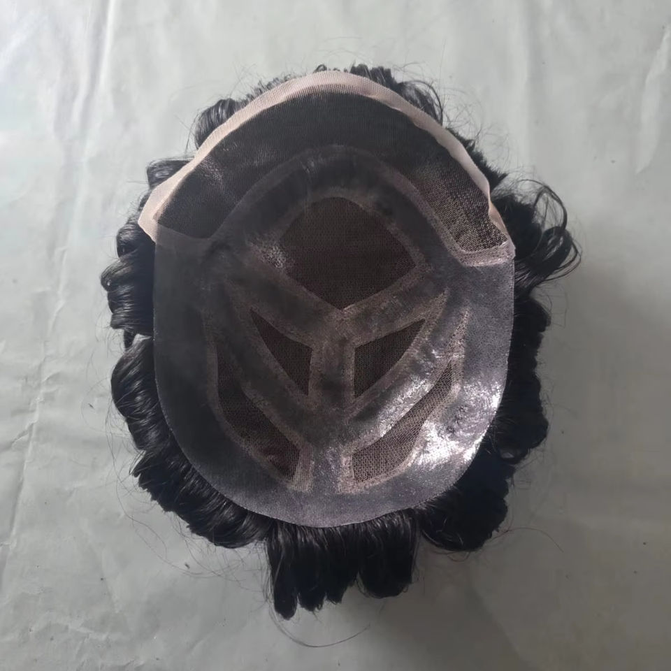Taz Hair MGM Model Men's Lace Front Water Wave Soft Indian Remy Human Hair Toupee Wig Prosthesis Patches Systems