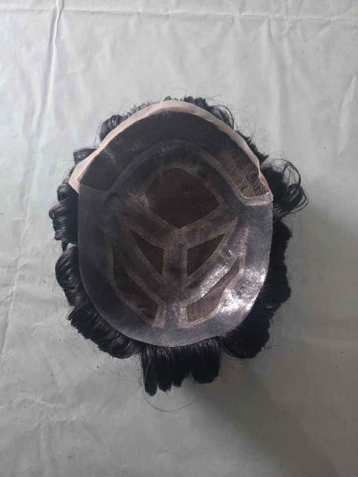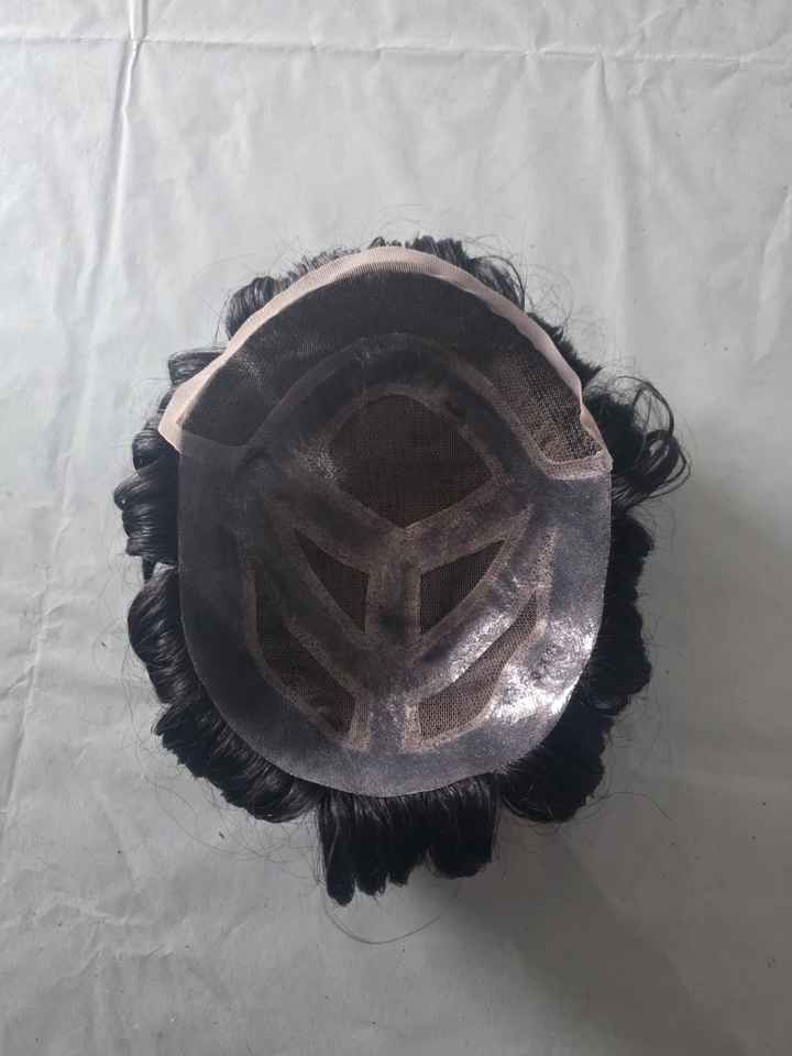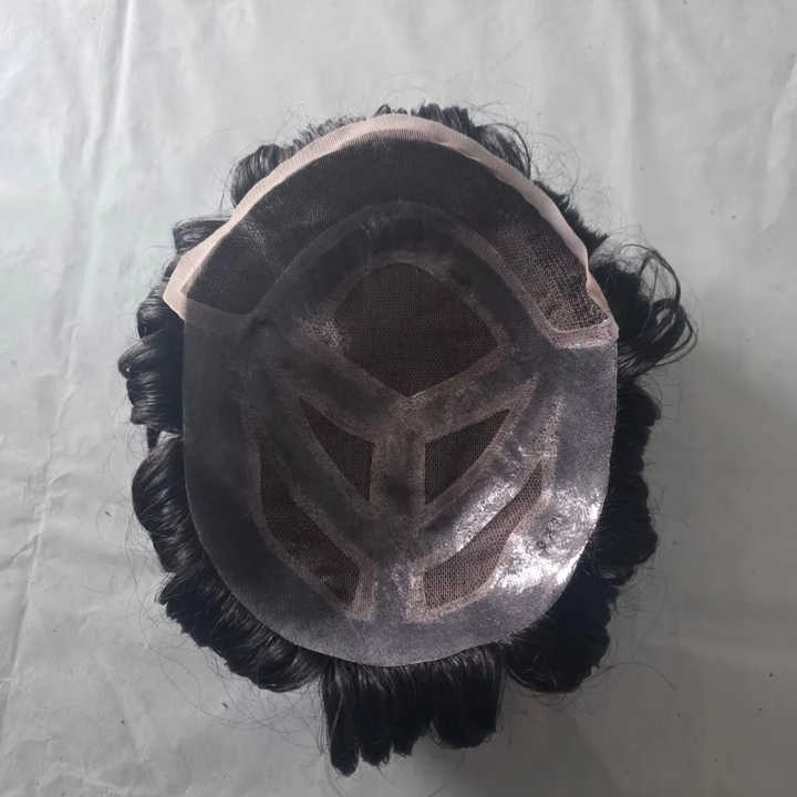 Taz Hair MGM Model Men's Lace Front Water Wave Soft Indian Remy Human Hair Toupee Wig Prosthesis Patches Systems