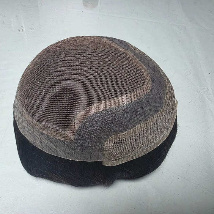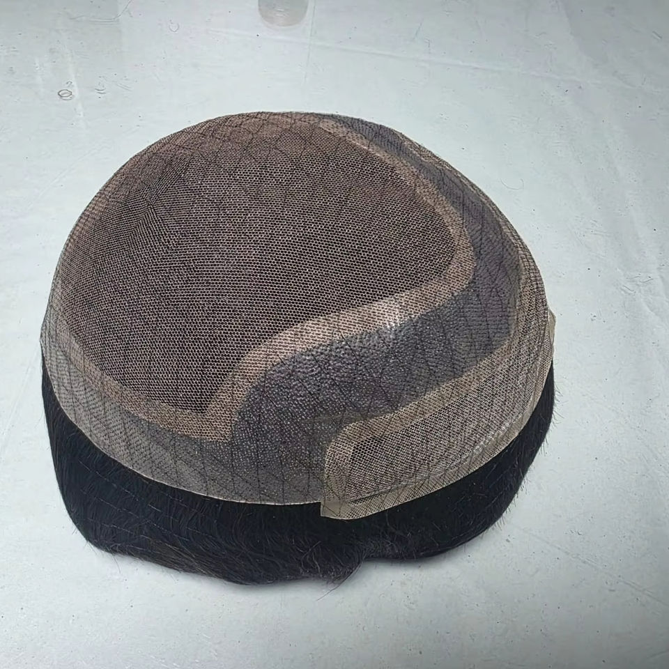 Men's SD230906 Hair-shaped U-Shaped Lace Frontal Closure Thin Skin PU and Human Hair Toupee Model Number Skin