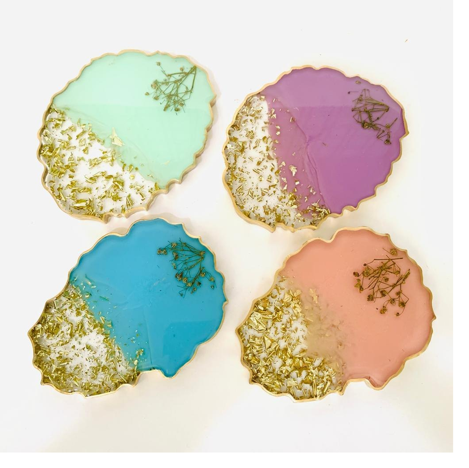Tea Coffee Cup Epoxy Resin coaster Set of 6 Green Color Round Shape for Customized Size Hot Sale Product