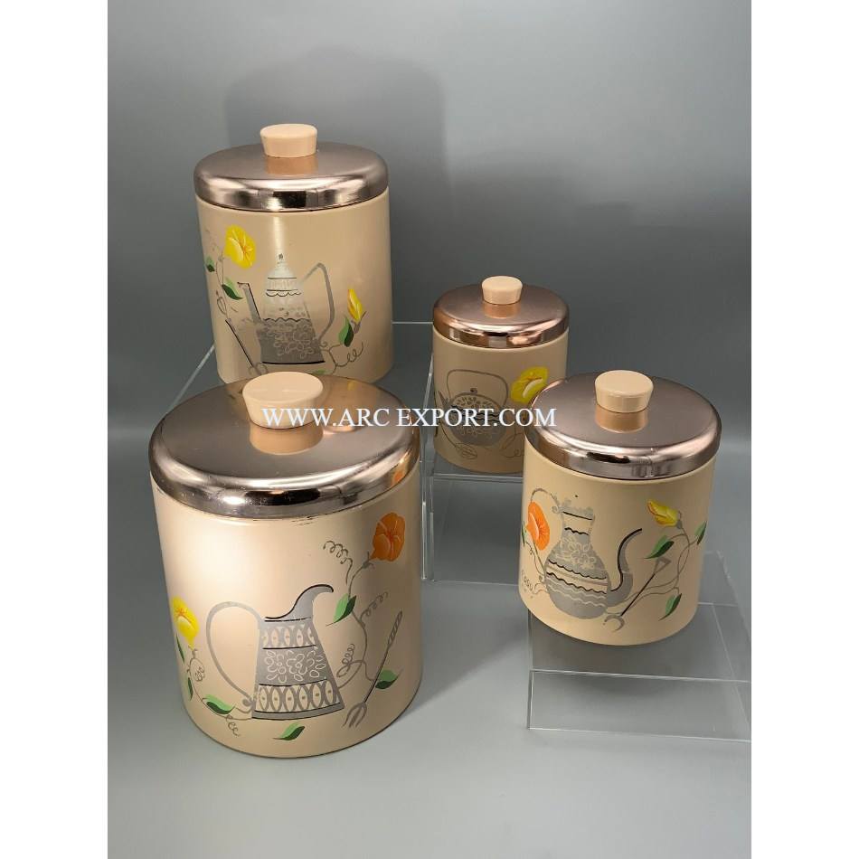 Tea Coffee Sugar Bread Canister Tins Kitchen Essentials for Sugar Pot & Bread Storage Boxes Set Of 4 Different Size Brass Pots
