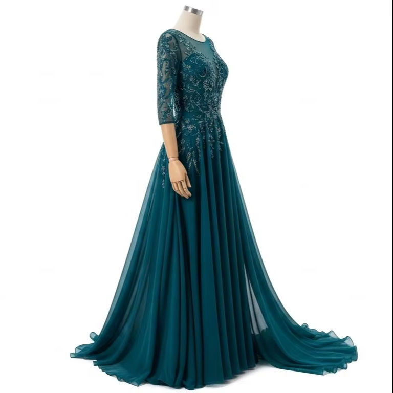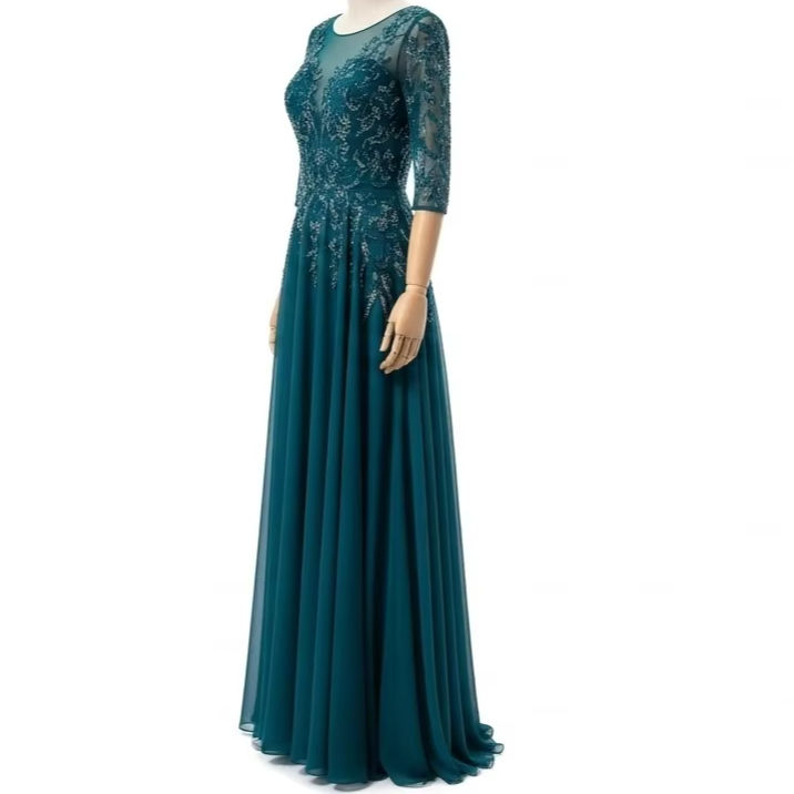 Tea-Length Evening Gown for Women | Digital Beaded Mesh Fabric | Formal Prom Cocktail Party Dress | Custom Plus Size Wedding