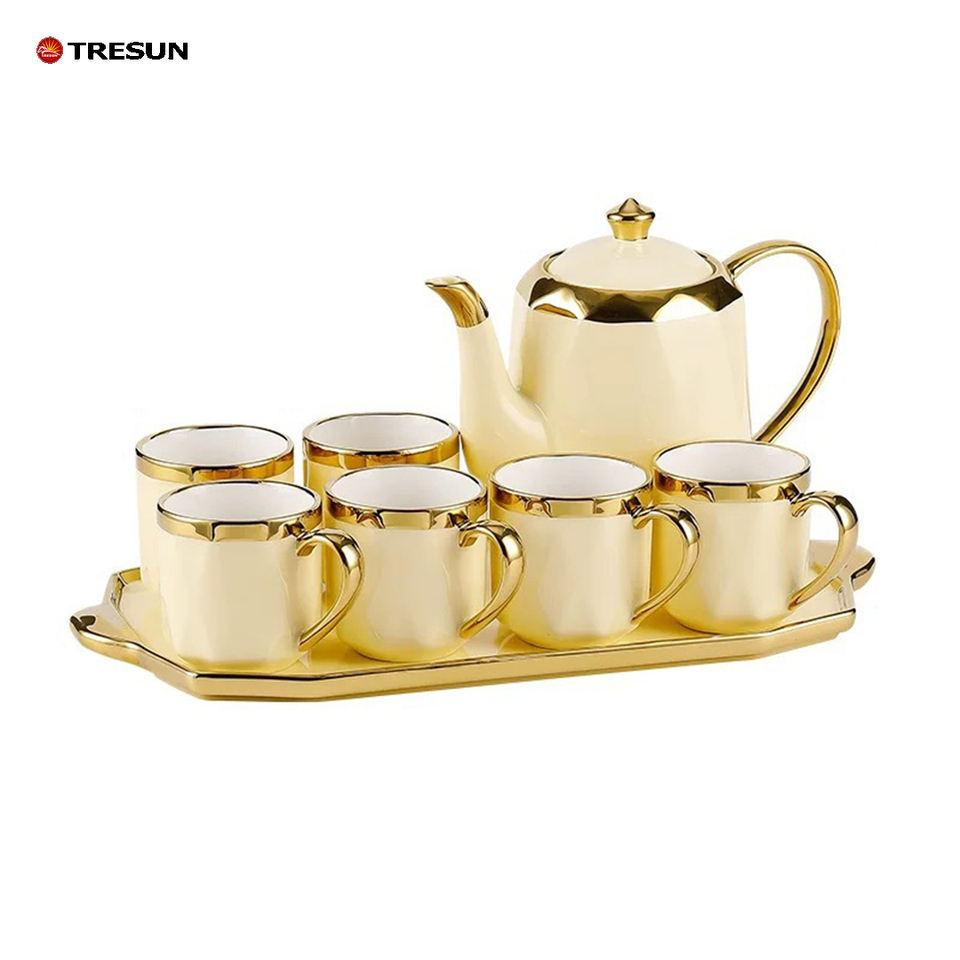 Tea Sets Luxury Ceramic Classic European Style Coffee Cup Simple Design Reusable Custom White Ceramic Coffee Cup Set for Hotel