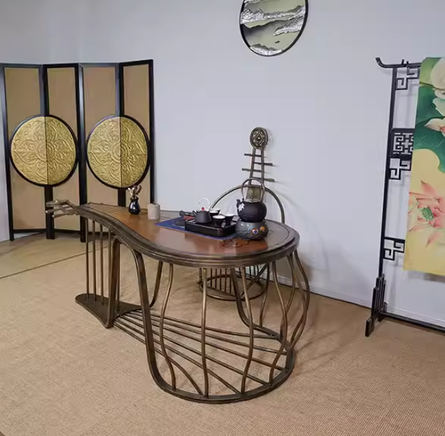 Tea table, solid wood, iron art, pipa, vintage table, coffee table and chair combination, Zen tea table, balcony, tea table
