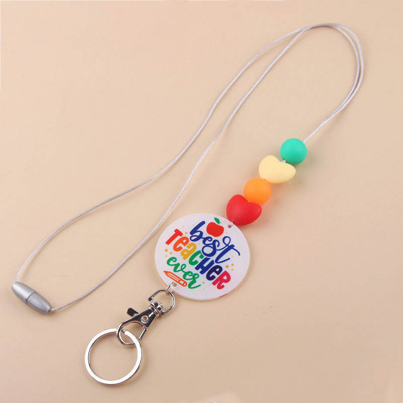 Teacher's Day Gifts Silicone Beads Lanyards Keychain Retractable ID Lanyard Badge Holder