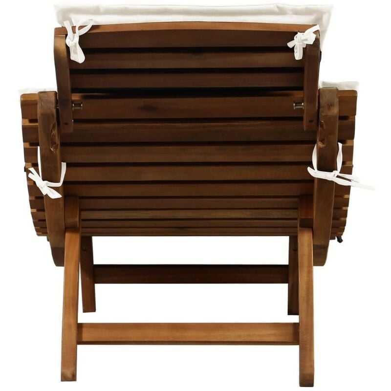 Teak Folding Sun Bed Beach Lounge Sun Lounger With Cushion Adjustable Chaise