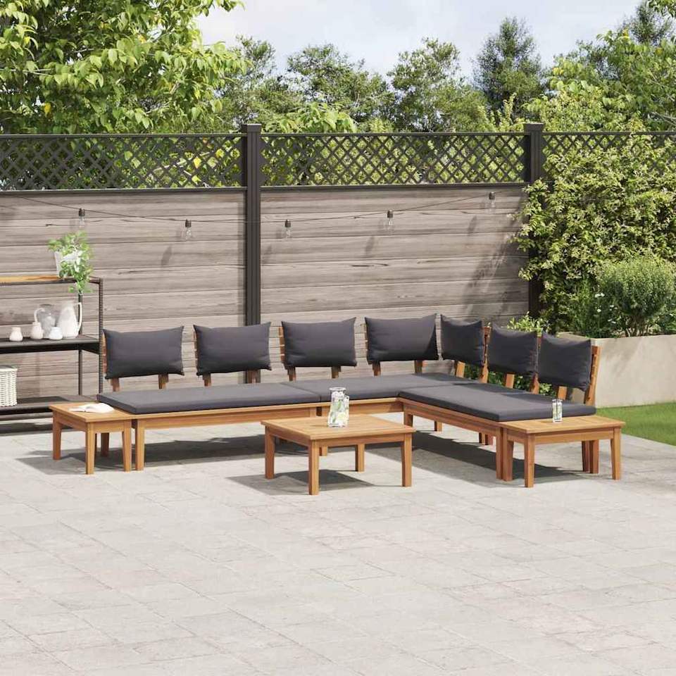 Teak Garden Bench Set With Storage Cushion Outdoor Furniture 6 Seater Contemporary Design Solid Wood Patio Seating