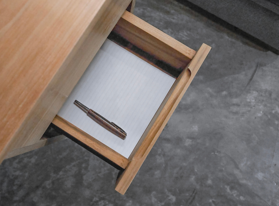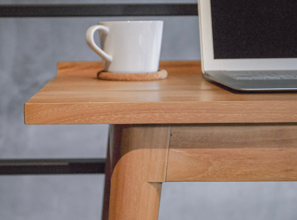 Teak Wood Asymmetric Desk Natural Finish Modern Writing Table Home Office Study Unique Design Working Hotel Villa Resort Bedroom
